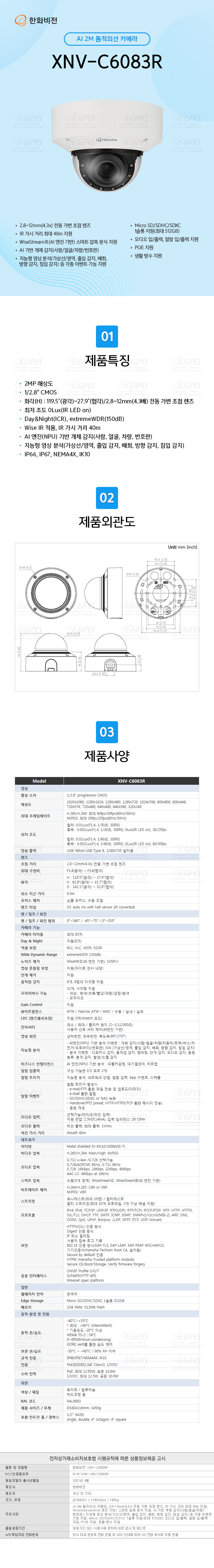 AI 2M µ¼Àû¿Ü¼± Ä«¸Þ¶ó, 2.8~12mm(4.3x) Àüµ¿ °¡º¯ ÃÊÁ¡ ·»Áî, IR °¡½Ã °Å¸® ÃÖ´ë 40m Áö¿ø, WiseStream¥²(AI ¿£Áø ±â¹Ý) ½º¸¶Æ® ¾ÐÃà ¹æ½Ä Áö¿ø, AI ±â¹Ý °´Ã¼ °¨Áö(»ç¶÷/¾ó±¼/Â÷·®/¹øÈ£ÆÇ), Áö´ÉÇü ¿µ»ó ºÐ¼®(°¡»ó¼±/¿µ¿ª, ÃâÀÔ °¨Áö, ¹èȸ, ¹æÇâ °¨Áö, ħÀÔ °¨Áö) µî °¢Á¾ À̺¥Æ® ±â´É Áö¿ø, Micro SD/SDHC/SDXC 1½½·Ô Áö¿ø(ÃÖ´ë 512GB), ¿Àµð¿À ÀÔ/Ãâ·Â, ¾Ë¶÷ ÀÔ/Ãâ·Â Áö¿ø, POE Áö¿ø, »ýȰ ¹æ¼ö Áö¿ø