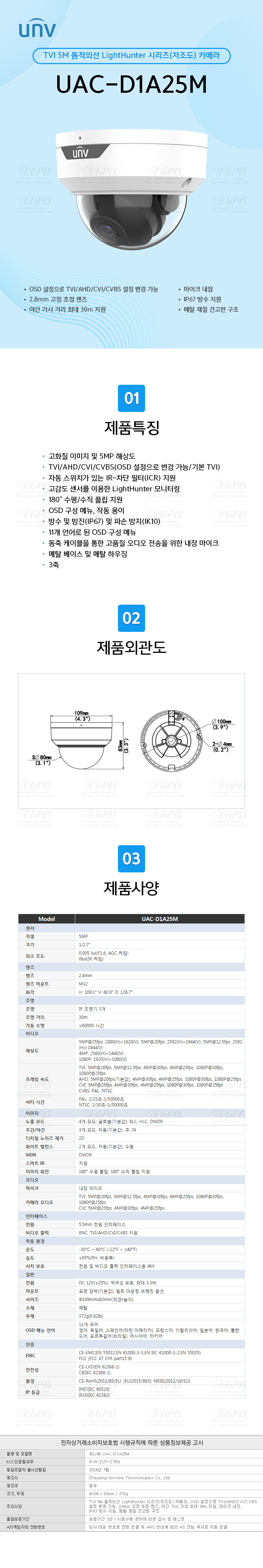 TVI 5M µ¼Àû¿Ü¼± LightHunter ½Ã¸®Áî(ÀúÁ¶µµ) Ä«¸Þ¶ó, OSD ¼³Á¤À¸·Î TVI/AHD/CVI/CVBS ¼³Á¤ º¯°æ °¡´É, 2.8mm °íÁ¤ ÃÊÁ¡ ·»Áî, ¾ß°£ °¡½Ã °Å¸® ÃÖ´ë 30m Áö¿ø, ¸¶ÀÌÅ© ³»Àå, IP67 ¹æ¼ö Áö¿ø, ¸ÞÅ» ÀçÁú °ß°íÇÑ ±¸Á¶