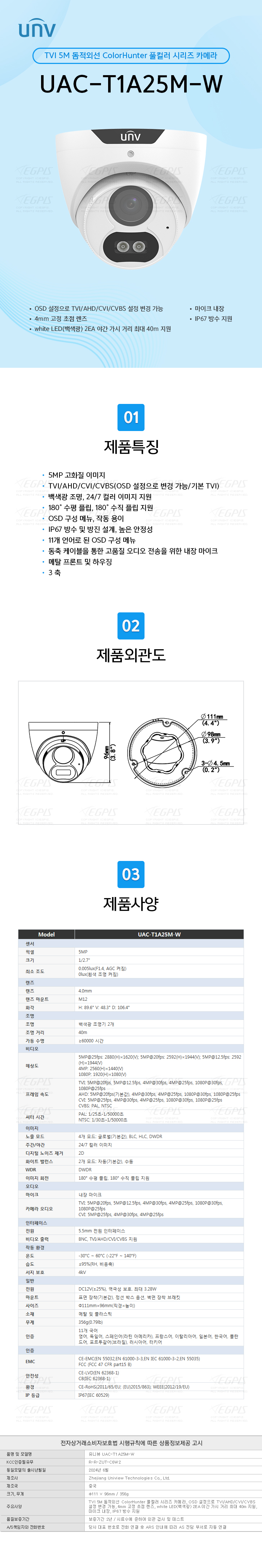TVI 5M µ¼Àû¿Ü¼± ColorHunter Ç®Ä÷¯ ½Ã¸®Áî Ä«¸Þ¶ó, OSD ¼³Á¤À¸·Î TVI/AHD/CVI/CVBS ¼³Á¤ º¯°æ °¡´É, 4mm °íÁ¤ ÃÊÁ¡ ·»Áî, white LED(¹é»ö±¤) 2EA ¾ß°£ °¡½Ã °Å¸® ÃÖ´ë 40m Áö¿ø, ¸¶ÀÌÅ© ³»Àå, IP67 ¹æ¼ö Áö¿ø