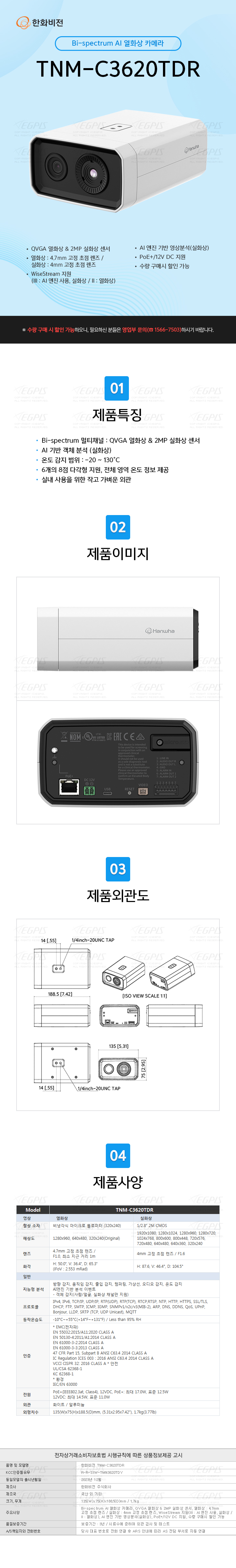 Bi-spectrum AI ¿­È­»ó Ä«¸Þ¶ó, QVGA ¿­È­»ó & 2MP ½ÇÈ­»ó ¼¾¼­, ¿­È­»ó : 4.7mm °íÁ¤ ÃÊÁ¡ ·»Áî / ½ÇÈ­»ó : 4mm °íÁ¤ ÃÊÁ¡ ·»Áî, WiseStream Áö¿ø(III : AI ¿£Áø »ç¿ë, ½ÇÈ­»ó / II : ¿­È­»ó), AI ¿£Áø ±â¹Ý ¿µ»óºÐ¼®(½ÇÈ­»ó), PoE+/12V DC Áö¿ø, ¼ö·® ±¸¸Å½Ã ÇÒÀÎ °¡´É