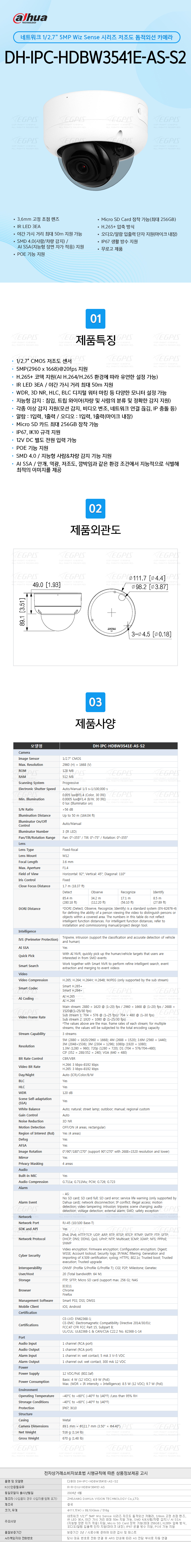 [½ºÅ¸¶óÀÌÆ®¡Ú¾ß°£Ä®¶ó] ´ÙÈÄ¾Æ DH-IPC-HDBW3541E-AS-S2(3.6mm) [NE23235]