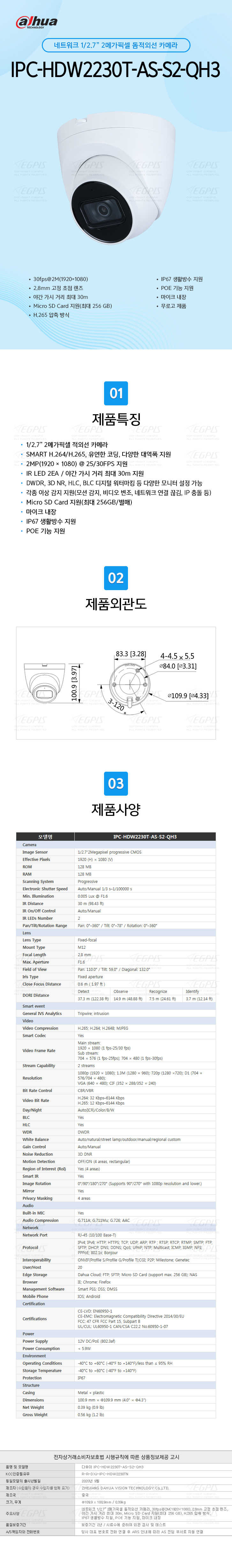 ´ÙÈÄ¾Æ IPC-HDW2230T-AS-S2-QH3(2.8mm) [NE24028]